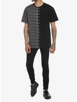 Outlet 🎁 Black & Grey Stripe Split Safety Pin T-Shirt 🤩