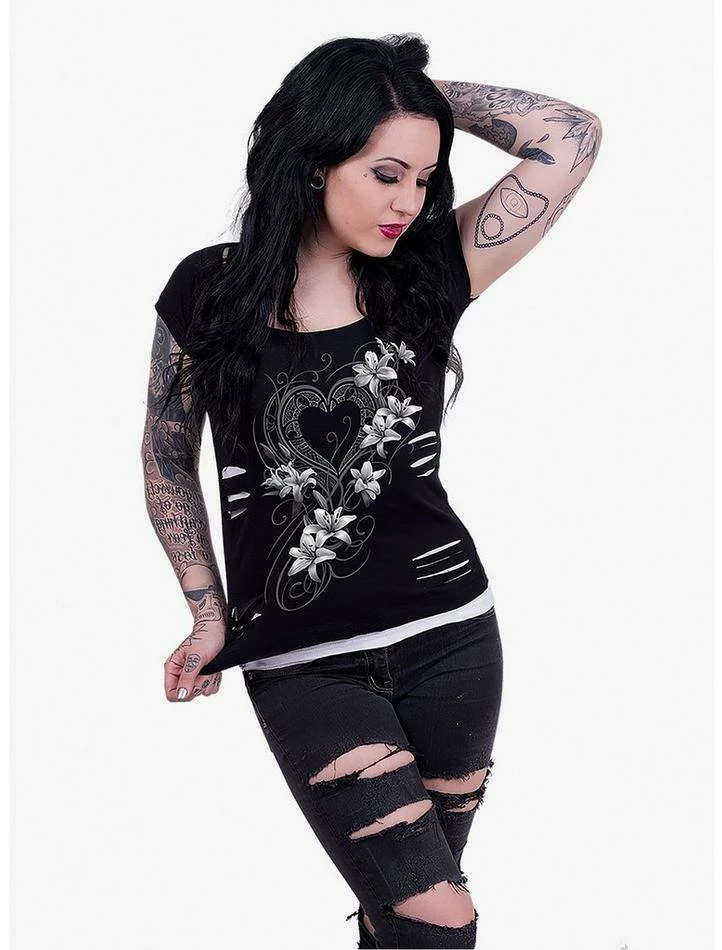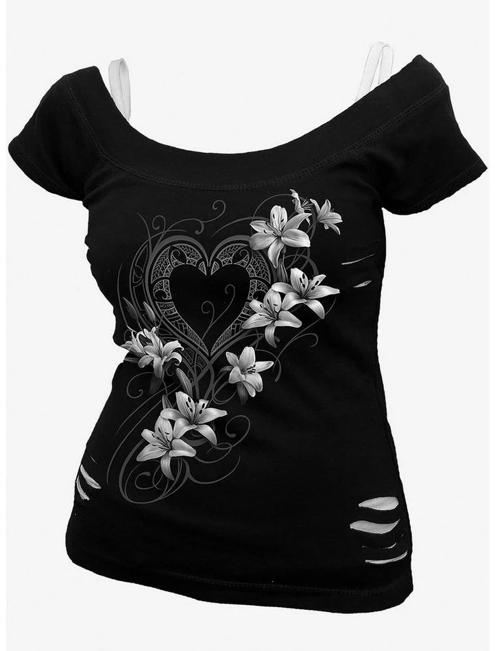 Symbolising devotion and virtue, lilies restore innocence to the soul and purity to the heart. This 2 in 1 distressed tee is made of top quality, knitted cotton using skin friendly, Azo-free, reactive dyes.