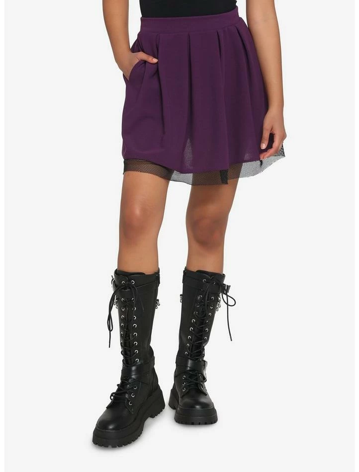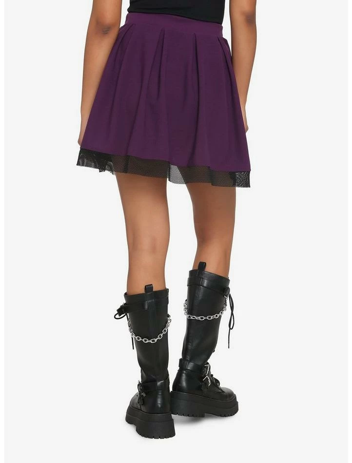 This skater skirt is gonna skate its way right into your closet! It has a beautiful deep purple color and has black fishnet trimming along the bottom. Comes with side seam pockets and a stretchy elastic waistband for extra comfort.