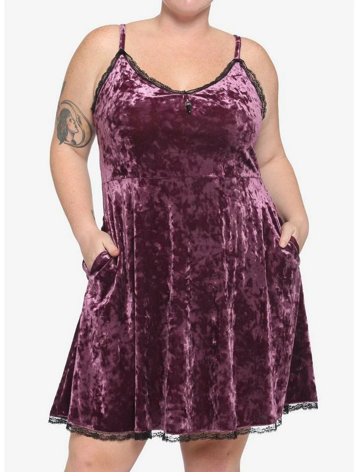 Who needs a little black dress when you can have a little purple dress? This velvet babydoll dress comes in a pretty shade of purple, with lace trim on the neckline and bottom hem and a faux crystal charm in the middle of the neckline. Straps are adjustable, and it comes with pockets.