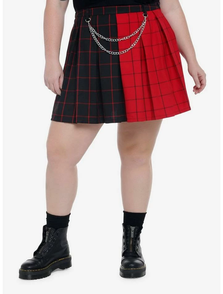 Wholesale ๐ Red & Black Split Plaid Chains Pleated ๐ Skirt Plus Size ๐