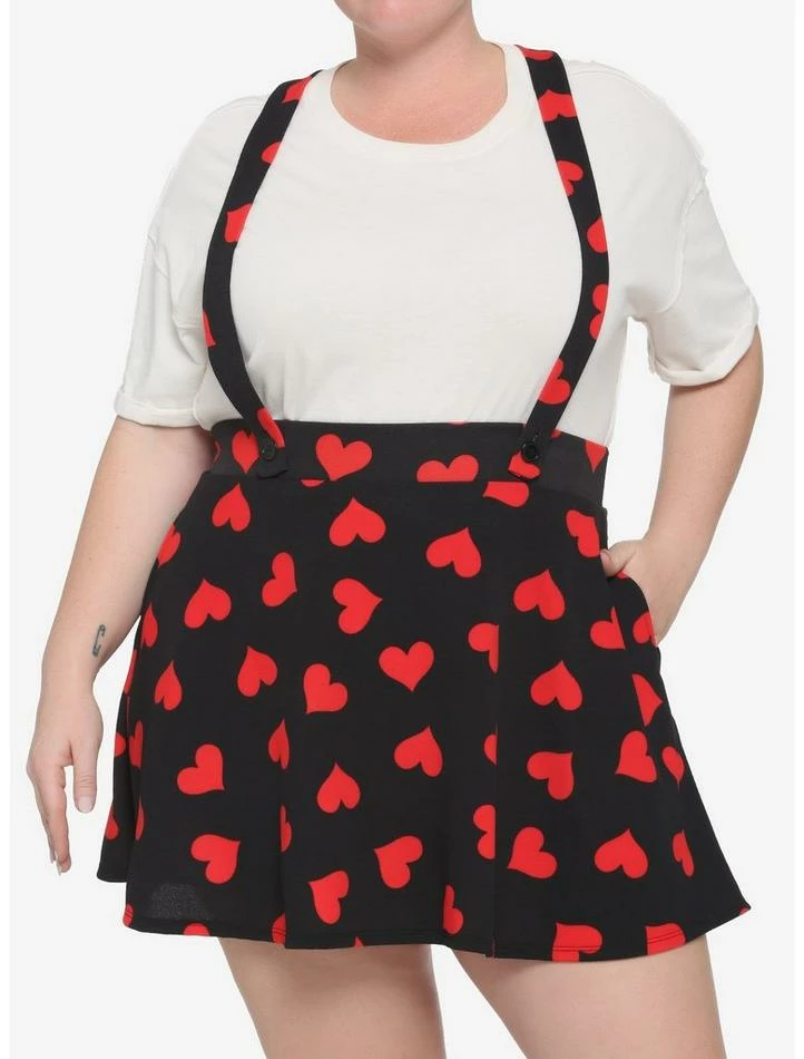 Wear your heart on your skirt! We’re in love with this black suspender skirt, filled with red hearts all over. Comes with hip pockets, a stretchy waistband and removable straps! What’s not to love?