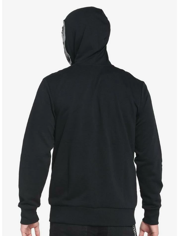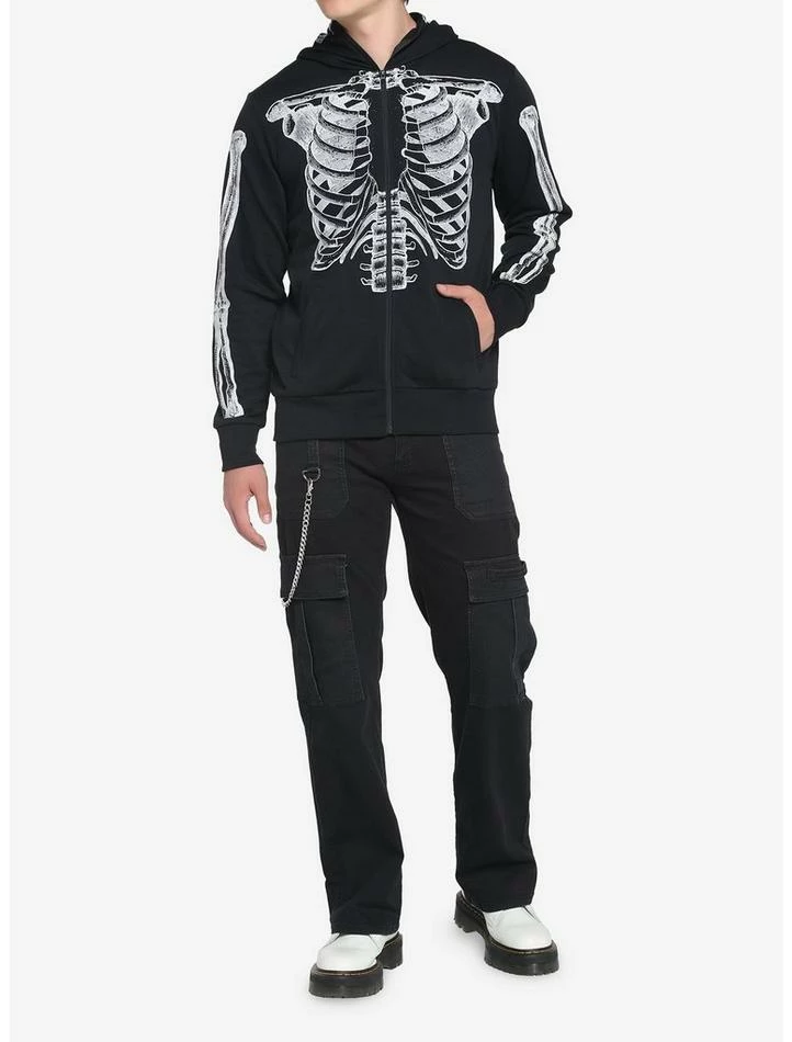 Take your skeletons out of the closet and wear ’em out all night long in this black hoodie. The hoodie features a skeleton design and a full-zip hood. Front zipper closure and pouch pockets.