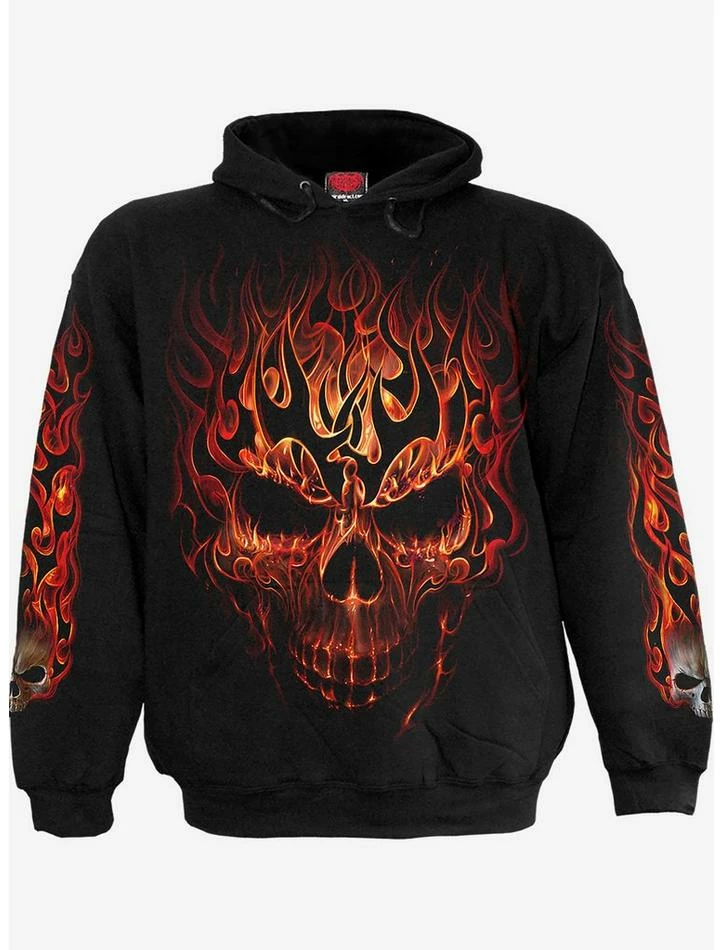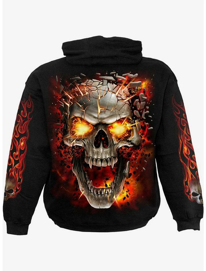 Ever feel so much pressure building up inside your brain that you?re worried it might explode? Scorching hot magma and flame erupts from within this skull, splintering it into a million fragments and scattering them to the wind. This hoodie is made of top quality cotton fleece using skin friendly, Azo-free, reactive dyes.