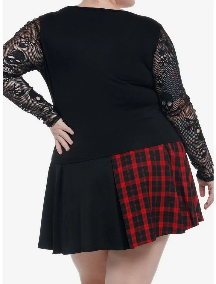 Need a long-sleeve top that’s goth but also a little romantic? This one has fishnet sleeves with skulls woven in, with lace-up detail on the front.