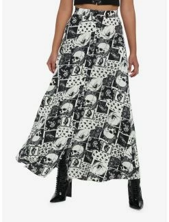 Get yourself a skirt that’s as dark as your soul. This ivory and black midi skirt has a patchwork design, featuring prints of ravens, spiders, skulls and anatomical hearts. It comes with a half-elasticated waistband and black functional buttons down the front. Style it with a brimmed hat and boots for a late-night graveyard stroll.