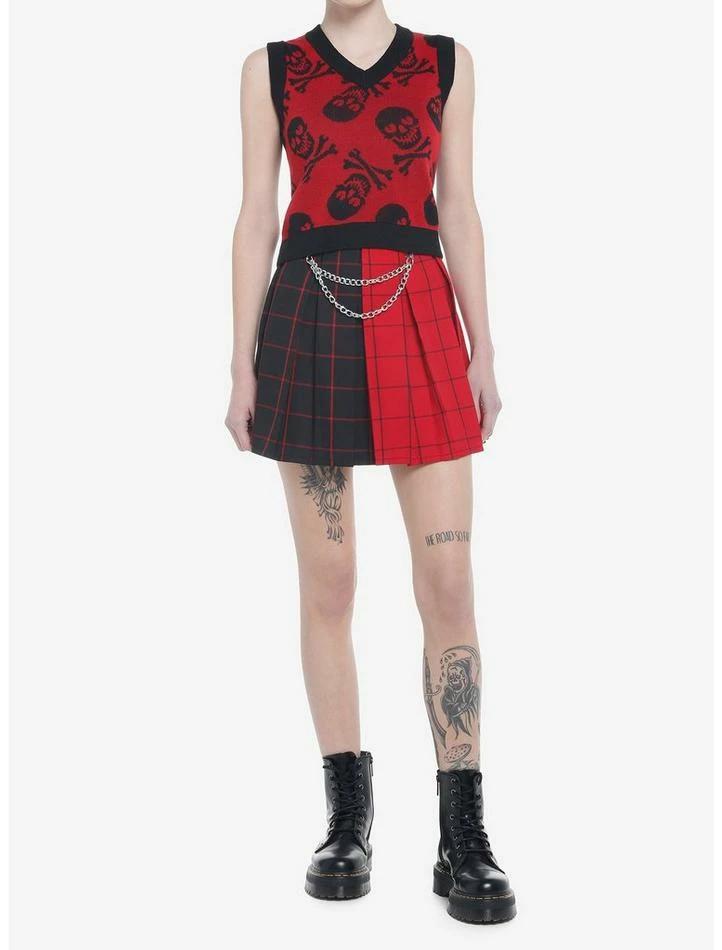 Yeah, we try to play it cool most of the time, but this sweater vest gives us heart eyes. It has a cropped fit and is knit with skulls and crossbones, and each heart has broken heart eyes.