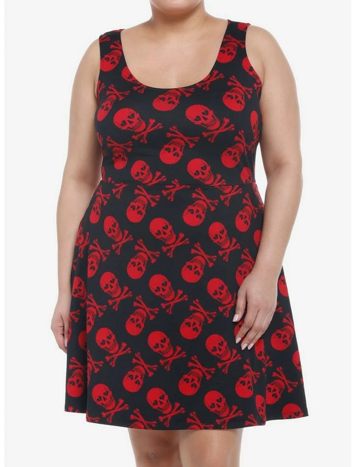 We welcome any new way to get more skulls into our looks. This tank dress features an allover print of skulls and crossbones with hearts and broken hearts in their eyes. Comes with pockets.