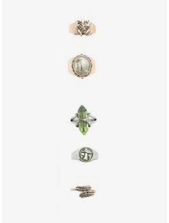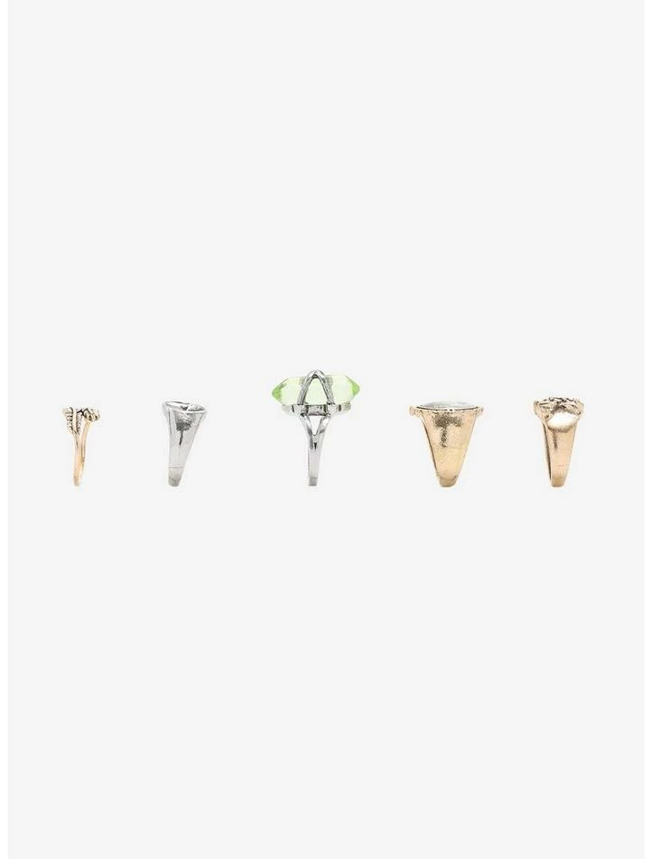 Let your inner goblin shine with these rings! From the deep depths of the forest, these rings are here to help you accessorize your nature-inspired outfits. Featuring vintage mushrooms, toads and faux green gems, this ring set is the perfect addition to any goblincore look.