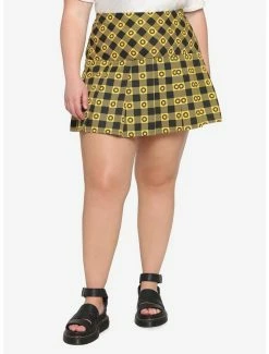 Let your look bloom in this skirt featuring a yellow and black plaid pattern with flower detailing, pleats and back zipper closure.