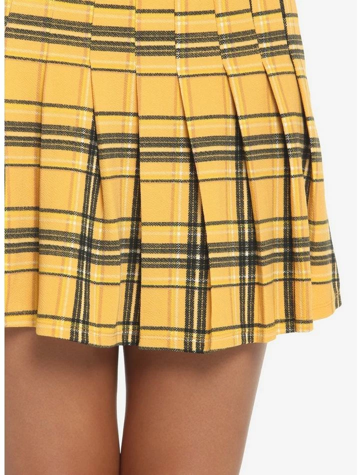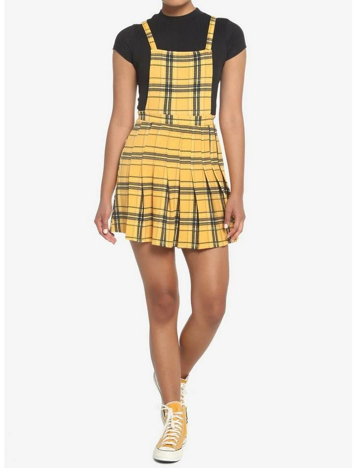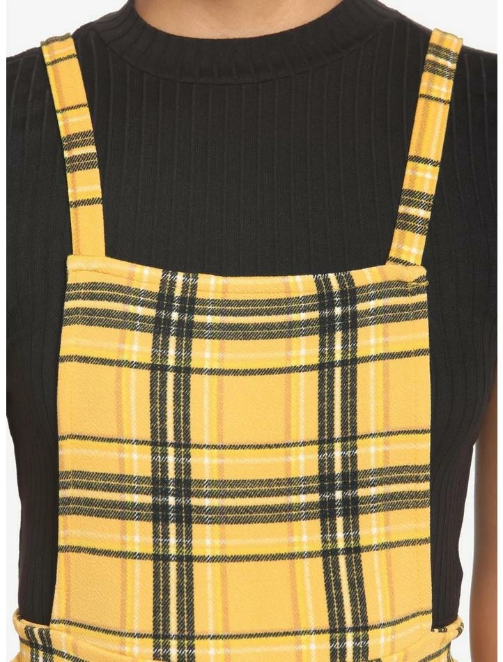 We’ve got the perfect ‘fit to channel those ’90s valley girl vibes! This twofer includes a black, ribbed cropped tee and a yellow plaid skirtall to complete your look.